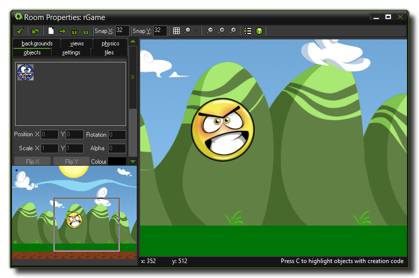 Once you have completed the design of your rooms, you are ready to run the game. The first room to be shown is always the first room in the main list of rooms and it will be run at the start. Now the instances you