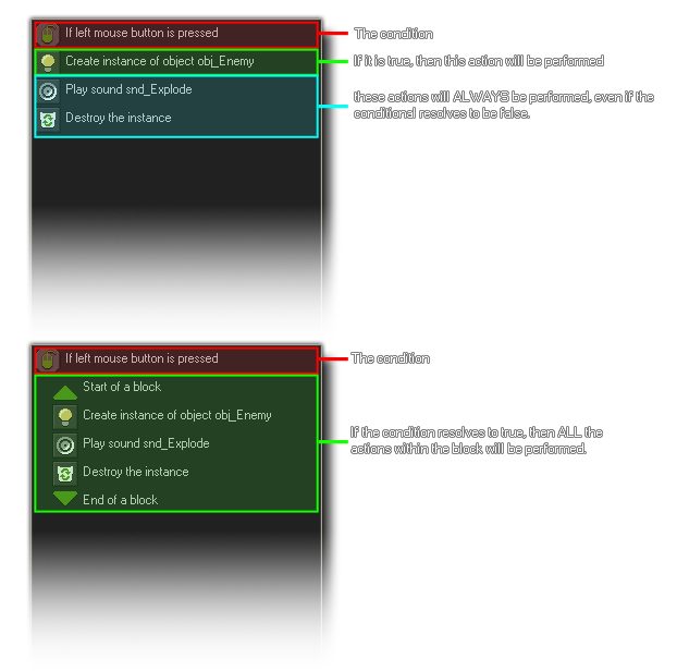 GML code. These actions are generally used in groups as outlined in the following image: