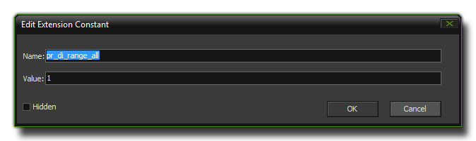 Here you can simply change the name of the constant (be aware that this may affect how the extension works) and the value that it represents. Note that you can mark the Hidden check-box to have the