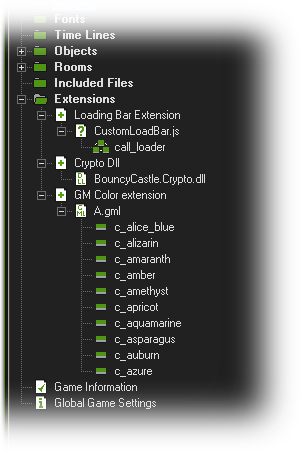 As you can see from the following screen, GameMaker: Studio can use various types of extension: