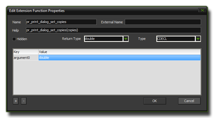 The Name is the name of the function in GML, and the External Name is the name of the function as the external SDK or file sees it. This part cannot be left blank, and must be filled in correctly,