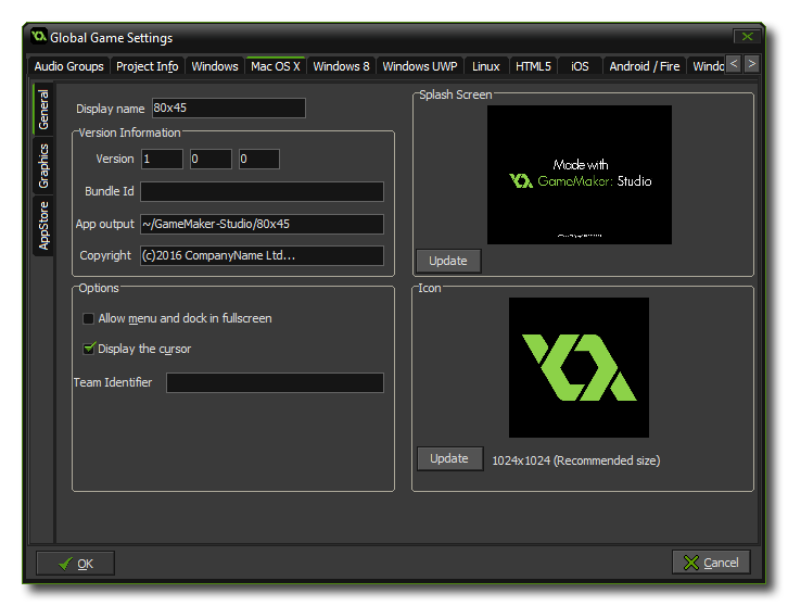 If you wish the finished game to be App Store Ready then you need to check the Build for Mac App Store option, but be aware that this will only function if you are a registered Developer