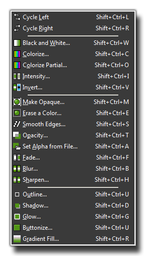 used together, rather than as individual effects. Also, don't forget that you can always save an animated sprite and later add it to the current one to create a single, larger animation. The following options exist for you to