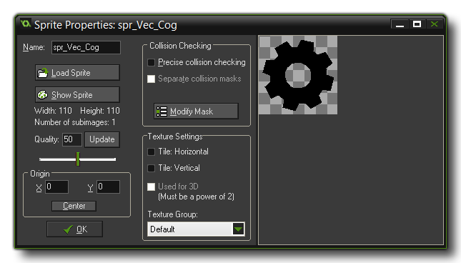 (up to a minute for more complex animations). When processing has finished you'll be returned to the sprite properties dialogue, which will now look like this: