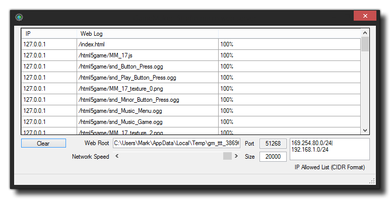 The Micro Web Server is a small program that GameMaker: Studio uses for HTML5 games and for connecting remotely to other computers and devices. It shows the currently connected
