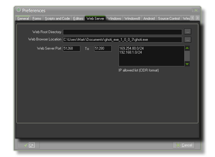 Here you can set up the web server that GameMaker: Studio is going to use. The available options are: