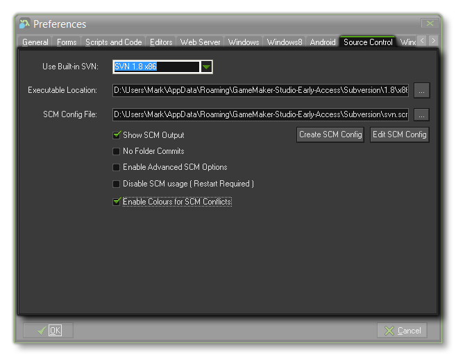 a custom SCM solution. By default this points to the latest version of SV that is bundled with the program and we recommend that you always use this version as GameMaker: Studio has been optimised for it.