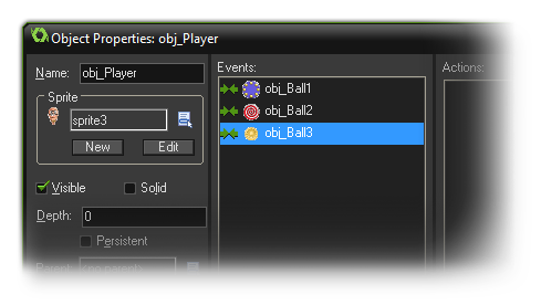 touch the player. Handy stuff! In the actual GameMaker: Studio object you would see something like this: