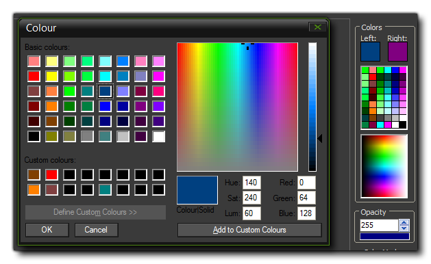 the colour mixer window (as happens when you click on the left or right draw colours), only now you can create your own colour and - without having to add it to the custom colours of this window - and click "Okay"
