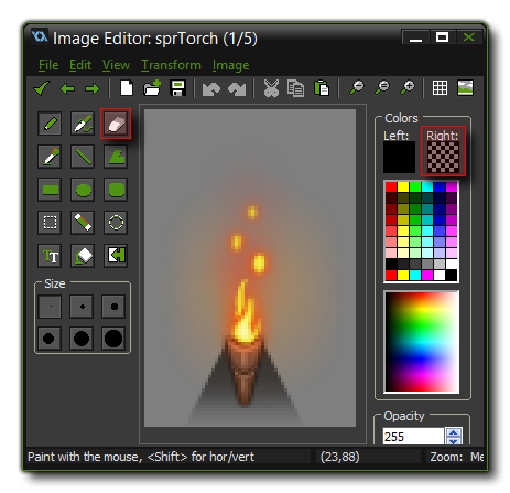 When you have selected the right mouse erase option, you will see that the right colour is now shown as a "checker-board" to show that you are using it as an eraser instead of a pencil.