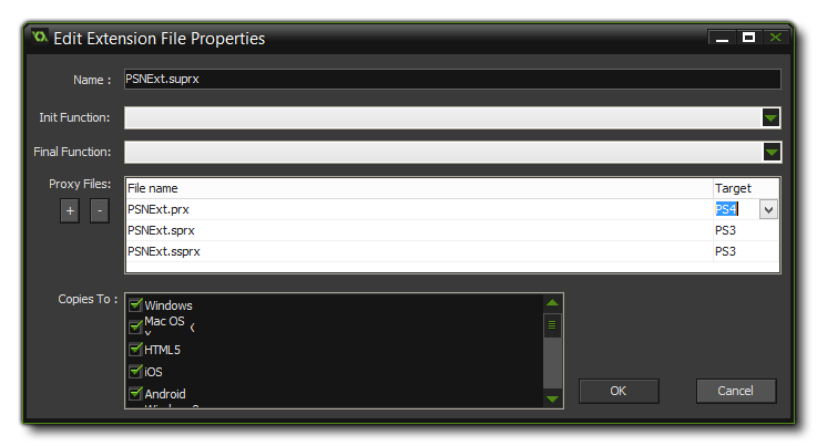 - .prx: This is a file for adding functionality to the PS3 and PS4 targets (each target will need a different *.prx file compatible with its specifications).