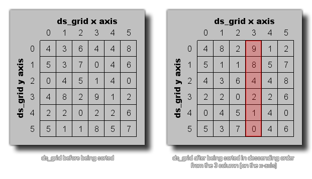 This function can be used to sort a ds_grid based on the values from a given column (much as you would sort files by date, size etc... in the Windows Explorer). The following image shows an example: