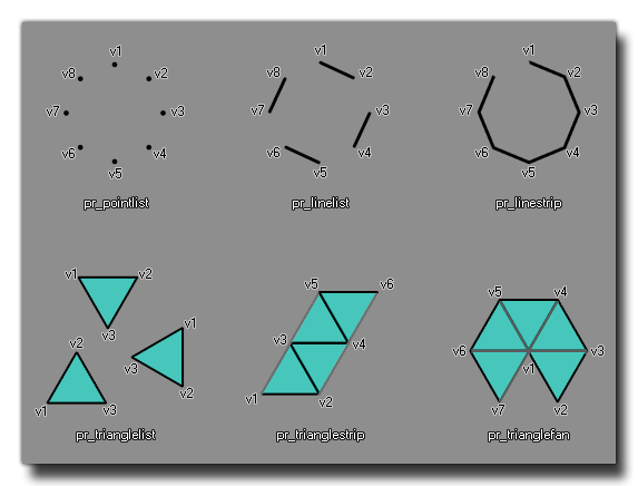 This function must be called before you can define any primitives. There are 6 types of primitives you can define with the following constants: