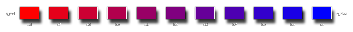 will return the first colour (col1), a value of 1 will return the second colour (col2) and a value in between will return the corresponding mix. For example, a value of 0.5 will mix the two colours equally. The following