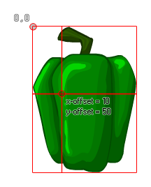 This function can be used to set the x and y origin of a sprite, and takes relative values based on the (0,0) position being the upper left corner of the sprite. The following image illustrates this: