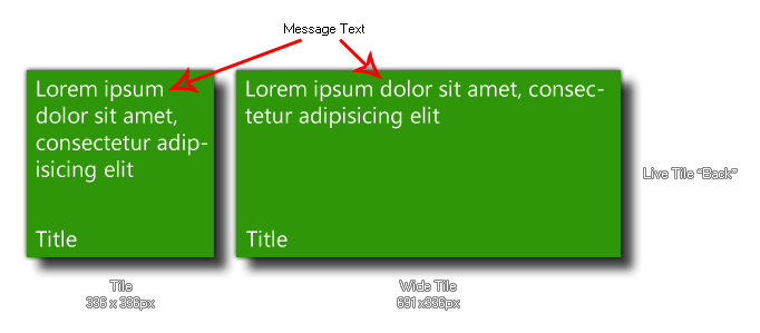 and a "back", in which case this message string will be shown when the tile flips to the "back", as shown in the following image: