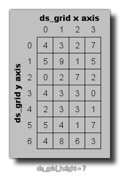This function will return the height of the given grid. This value is the number of cells the grid has along the y-axis and is always an integer, as shown in the image below: