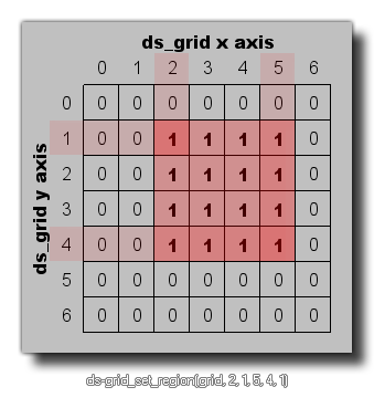 This function can be used to set a rectangular region of a given grid to a specified value (which can be either a real or a string) as illustrated by the image shown below: