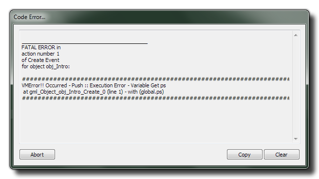This is an undefined error within the Virtual Machine. You should file a bug report should this happen (see: The Help Menu for details on how to do this.