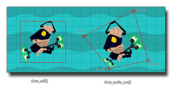 WARNING: The image above is only for illustrative purposes, and if you use this function on a sprite, you will get different results and may experience texture "shearing" due to the way that a sprite is constructed from a quad of primitives.