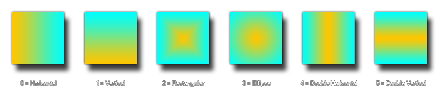 and used in all further calls that require this background (If there is an error, the function returns -1). The gradient itself can be set to one of 6 different kinds as shown below:
