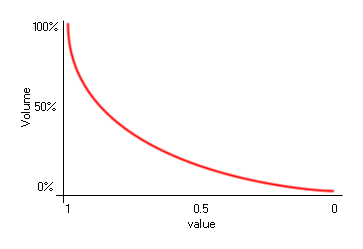 sound resource. The volume scale is logarithmic in nature, so a volume of 0.5 is not half volume, as illustrated by the image below: