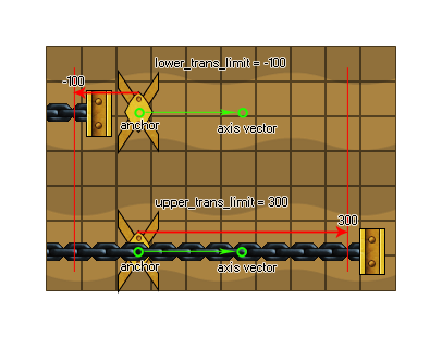 We have two instances joined at the anchor point, with an axis for movement defined from the vector the two w_axis x/y coordinates relative to the (0,0) coordinates of the physics world (so an x component of